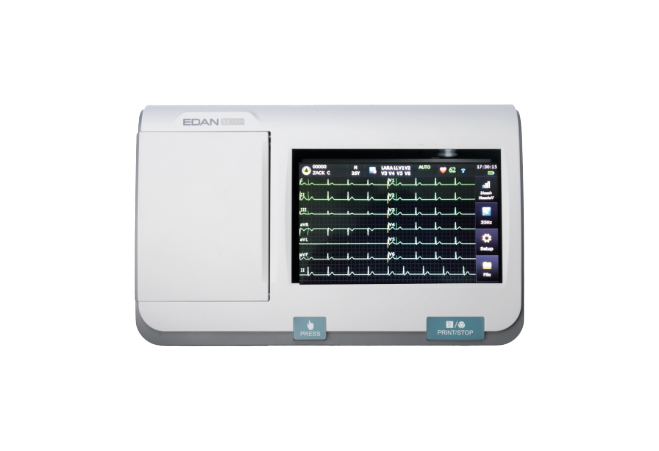 - 12-lead, multi-channel Electrocardiograph (ECG) reporting